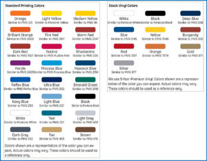 - VINYL COLOR CHANGE: No additional chage. Minimum of 100 decals per color.